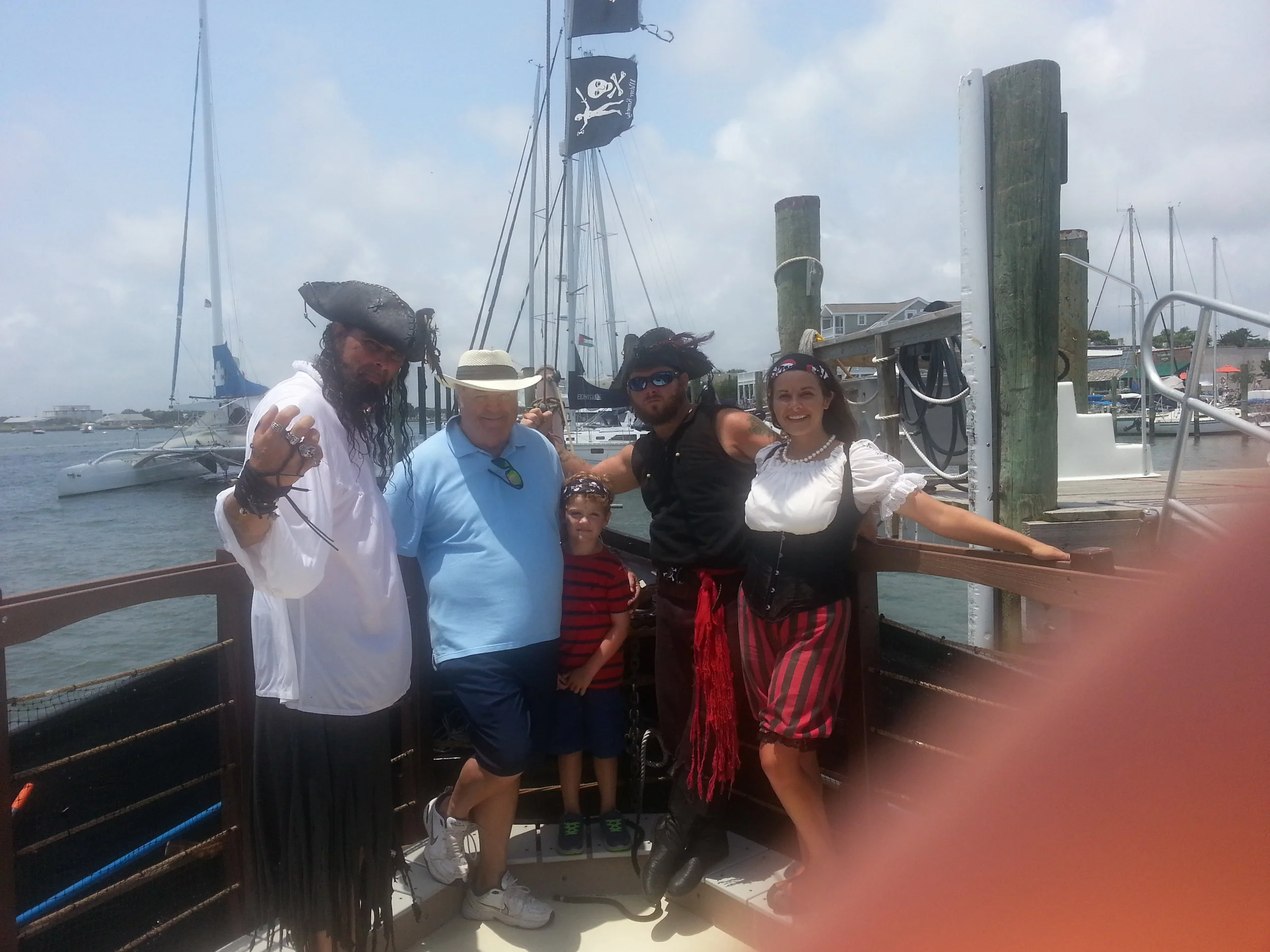 Judge Hunter Enjoying some time With some Pirates and his Grandson at the Beaufort pirate invasion.